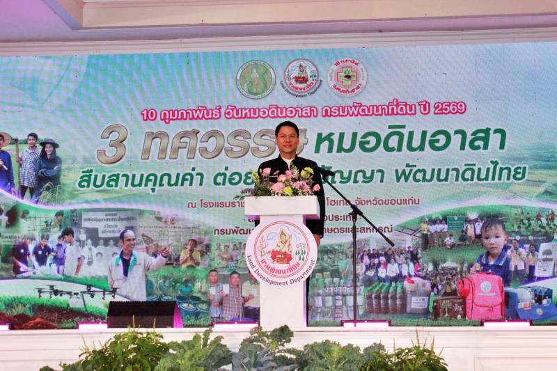 วันอังคารที่ 10 กุมภาพันธ์ 2569 นายสมผล สุพรหมอินทร์ สหกรณ์จังหวัดขอนแก่น ร่วมเป็นเกียรติในพิธีเปิดงาน "วันหมอดินอาสา กรมพัฒนาที่ดิน" ประจำปี พ.ศ. 2569 ภายใต้หัวข้อ "3 ทศวรรษ หมอดินอาสา สืบสานคุณค่า ต่อยอดภูมิปัญญา พัฒนาดินไทย" เพื่อเชิดชูเกียรติหมอดินอาสาและเครือข่ายเกษตรกร ผู้เป็นกำลังสำคัญในการขับเคลื่อนงานของกรมพัฒนาที่ดิน โดยมี นายกฤษ อุตตมะเวทิน รองปลัดกระทรวงเกษตรและสหกรณ์ เป็นประธานในพิธี ซึ่งมีหน่วยงานในสังกัดกระทรวงเกษตรและสหกรณ์เข้าร่วมงานในครั้งนี้ ณ โรงแรมราชาวดี รีสอร์ท แอนด์ โฮเทล ขอนแก่น ตำบลบ้านเป็ด อำเภอเมืองขอนแก่น จังหวัดขอนแก่น